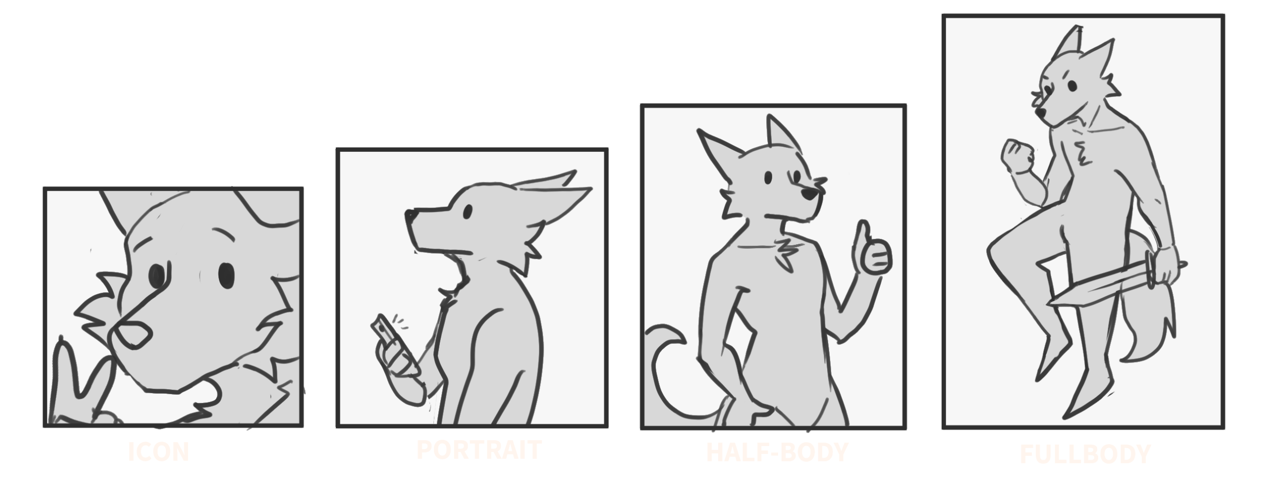 + Back/Torso only 15€ (no legs, no arms and no head)- Eyes & mouth shot 15€- Headshot 40€ e/a- Feral or Chibi 40€- Accesories 10-15€ e/a depending on complexity- Pattern epecification ( separatly drawing )